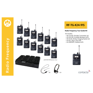 The RF-TX1-915 Portable Transmitter delivers wireless transmission of speech and/or music to users through the RF-RX1-915 Portable Receivers, using the 915MHz frequency. It’s a wireless assistive listening system intended for guided tours or interpretation services using FM radio waves.