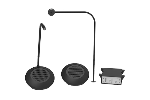 This entry level window intercom system provides clear communication through windows and barriers. It features a staff-side speaker and microphone pod, customer-side glass mounted microphone and the STS-A31H Window Intercom Amplifier. It is an affordable system suitable for a wide variety of environments including those with high ambient noise.
